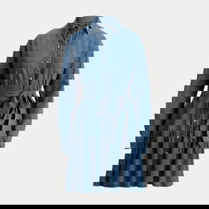 Lauren Ralph Lauren Lauren reimagines the iconic shirtdress silhouette with flutter sleeves, a flounced hem and comfortable medium-wash denim. This style is finished with a belted waist for a defined figure.