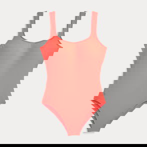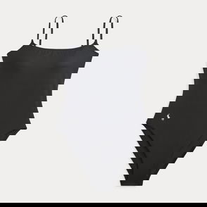 A belted waist accentuates the sleek silhouette of this one-piece halter swimsuit, which pairs a high-neck design with an open back.