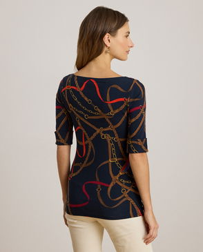 Showcasing Lauren Ralph Lauren Lauren's iconic, equestrian-inspired belting print, this boatneck tee is made with breathable stretch cotton for a soft hand.