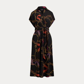 Showcasing the season's equestrian-inspired belting print, this short-sleeve dress is enhanced with shoulder pleats and a tie-front detail on the waist.