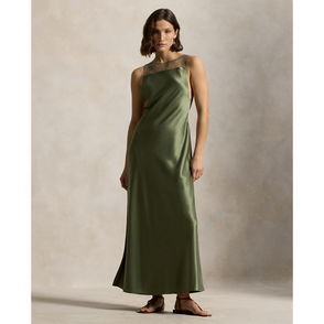 Description: Crisp pleats complement the asymmetrical off-the-shoulder neckline of this floor-length gown, which is beautifully draped in satin charmeuse for a lustrous sheen. A horseshoe-shaped buckle on the shoulder pays homage to Ralph Lauren Lauren's iconic equestrian-inspired heritage. Materials: Satin Product Code: 100064015