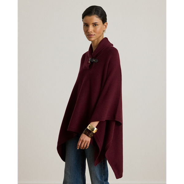 Detailed with a sumptuous faux-leather buckled tab at its shawl collar, this wool-blend jumper poncho is an elegant layer for cooler days.