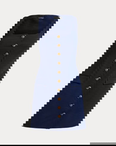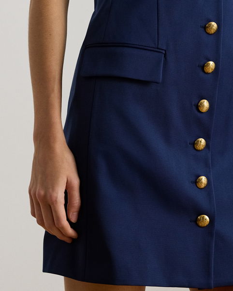 Blending sartorial design elements with the elegance of eveningwear, this faille cocktail dress features a crest-embossed buttoned placket, flapped pockets and panel seams that accentuate its sheath silhouette.