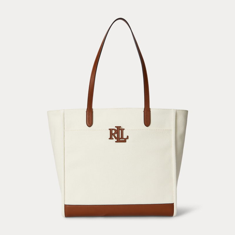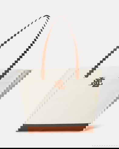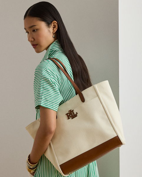 A stylish and practical addition to Lauren Ralph Lauren Lauren’s Cameryn collection, this tote bag features a spacious silhouette, which is realised in durable canvas with supple full-grain leather trim. A slip pocket on the exterior provides convenient access to your smaller items, like a phone or keys, while a stacked "LRL" logo on the front adds signature style.
