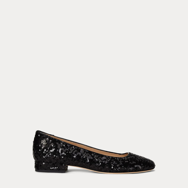 Embellished with Lauren’s signature logo at the heel, this version of the Emellie ballet flat features a sleek square-toe silhouette rendered in glistening sequins.
