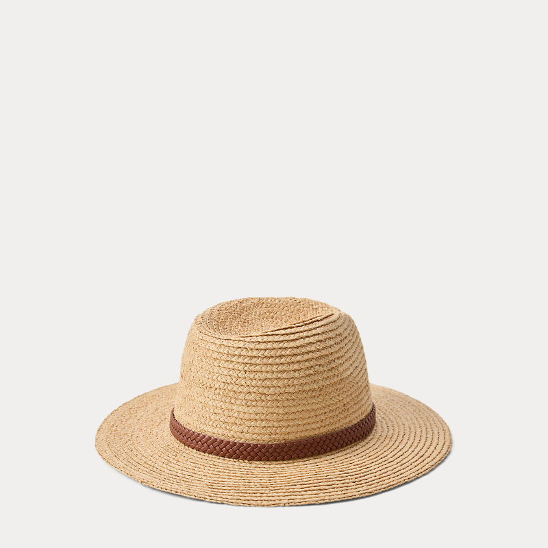 Faux-Leather-Trim Raffia Fedora