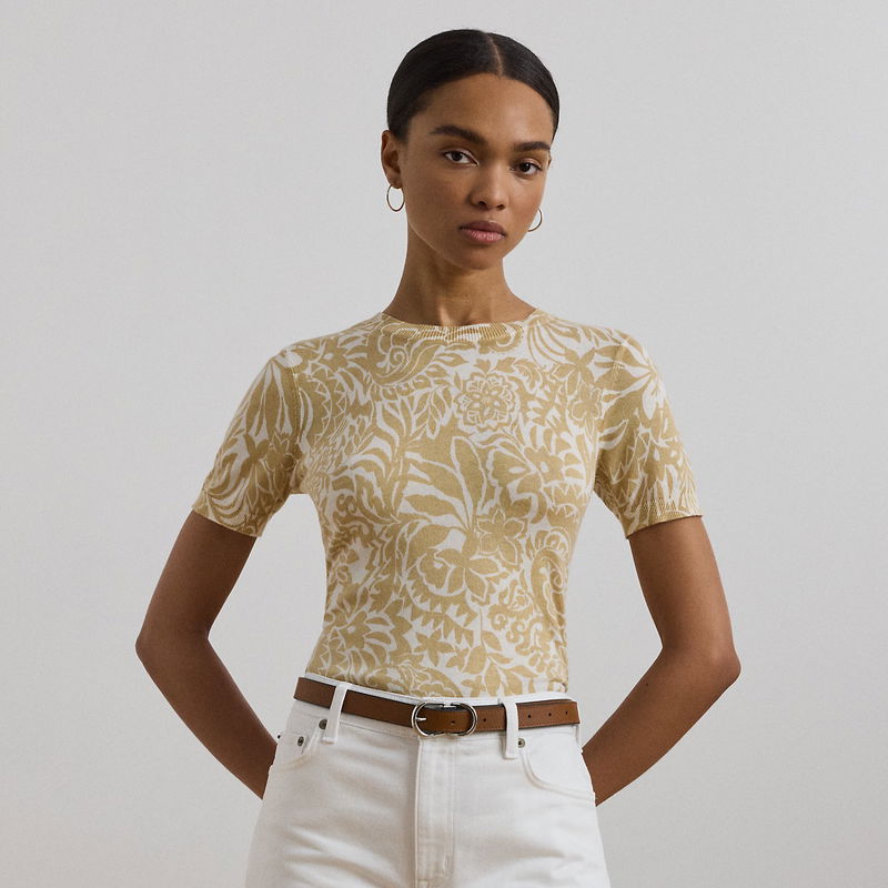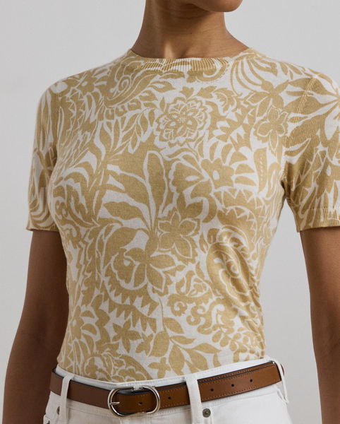 Spun with a lightweight cotton blend, this jumper’s short-sleeve design makes it a must-have for transitional dressing. It’s refreshed for the season with a two-tone, embroidery-inspired floral motif.