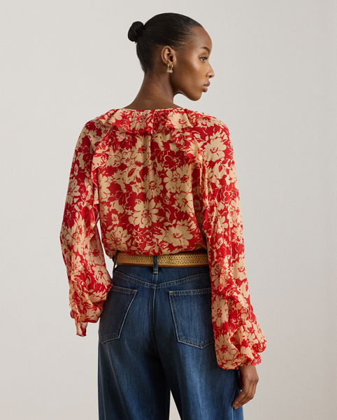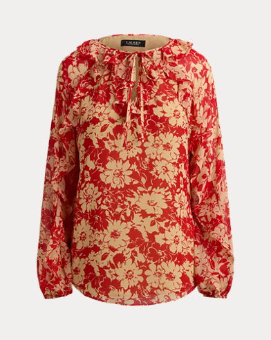 Floral Ruffle-Trim Georgette Blouse