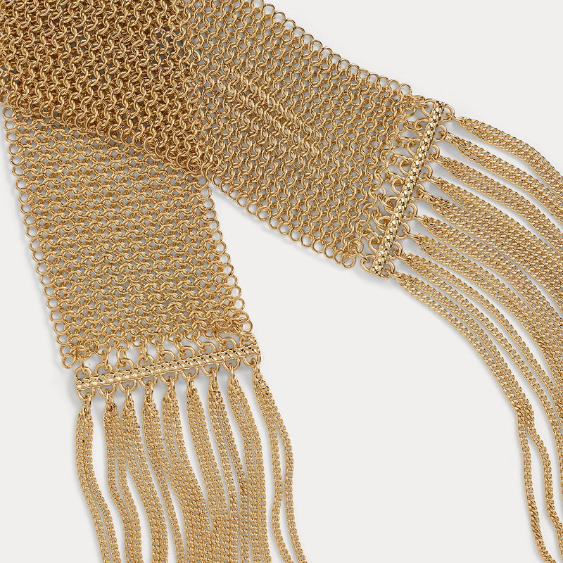 Gold-Plated Fringed Scarf Necklace