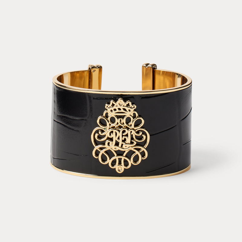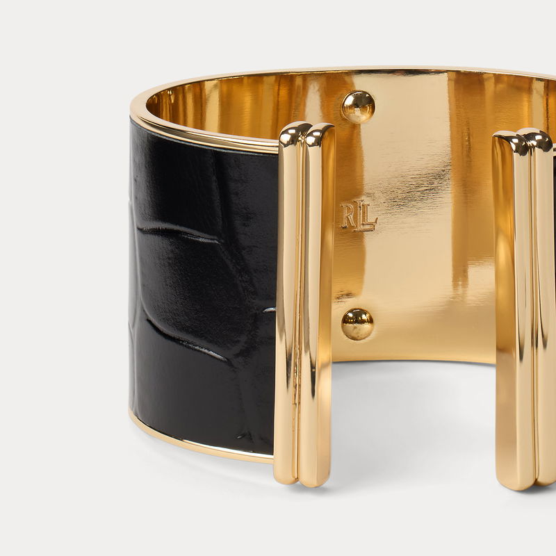 Gold-Plated Logo Leather Cuff Bracelet