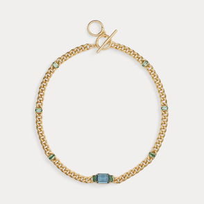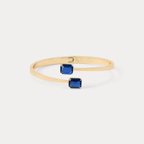 Crafted with 14K gold-plated brass, the sleek silhouette of this hinge bangle is decorated with light-catching imitation gemstones in a quadruple-prong setting. An “LRL”-engraved logo at the interior adds a subtle signature finish.