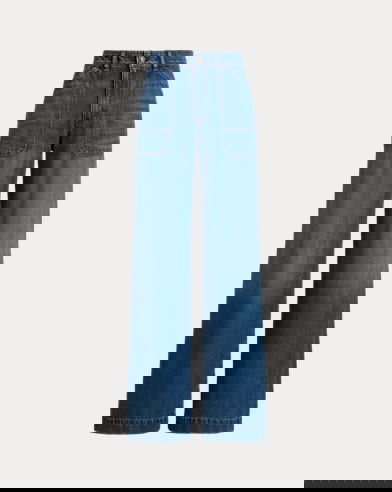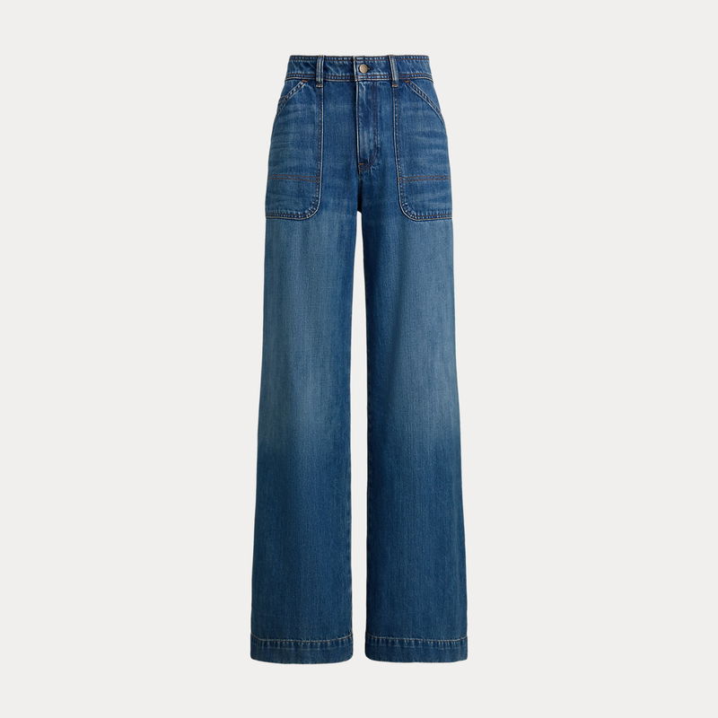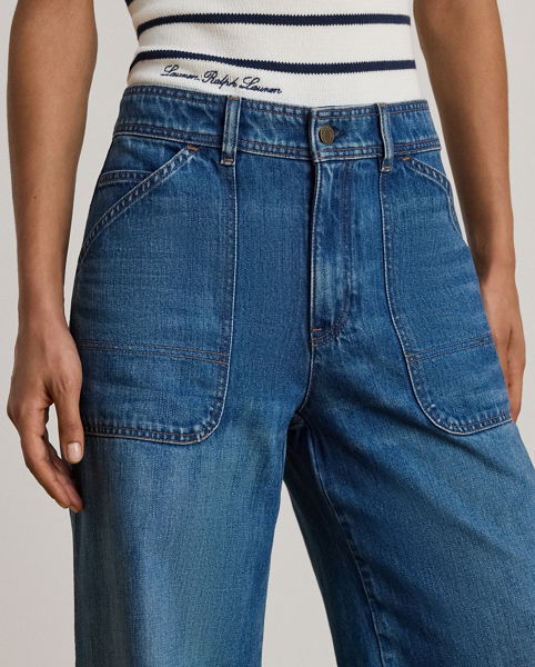 Crafted from comfortable medium-wash denim, these high-rise jeans feature a chic wide-leg silhouette and utility-inspired pockets.