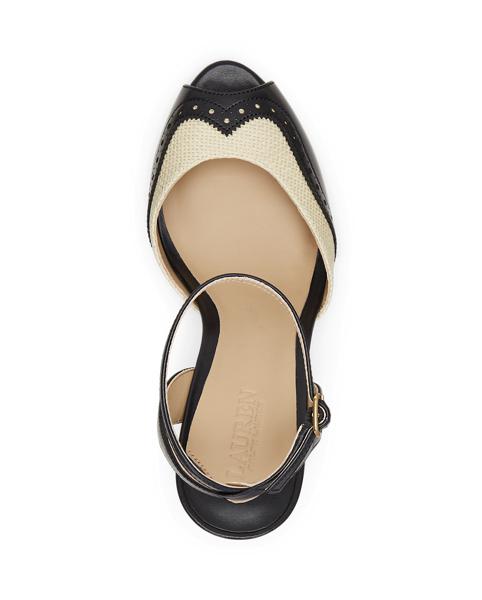 Crafted from a combination of straw and sumptuous calfskin leather, this iteration of the Kyla sandal unites an 80-mm heeled silhouette with wingtip-inspired perforated details. A crisscross ankle strap and a peep-toe design add modern appeal, while a leather-lined padded footbed offers comfort with each step.
