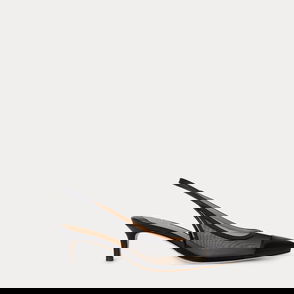 Designed with a smart pointy-toe silhouette, this season's eye-catching Lindella pump is crafted from zebra-print canvas. Polished "LRL" hardware affords signature style, while a leather-wrapped padded insole provides all-day comfort.