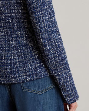 Shoulder pads, princess seams and waist darts enhance the streamlined silhouette of this blazer, which is crafted with airy linen-blend twill. Signature horn-effect buttons provide added sophistication.
