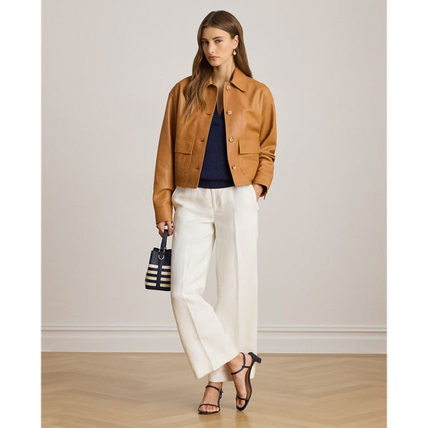Crafted from lightweight linen-blend twill, these wide-leg cropped trousers are detailed with folded cuffs and creases at each leg for a tailored look.