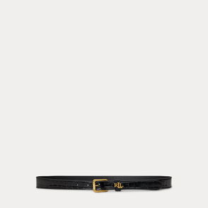 Add a hint of Lauren style to your look with this slender belt, which is crafted from pebbled leather and finished with a polished "LRL" buckle.
