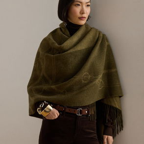 Crafted with a lightweight linen blend, this wrap scarf showcases a contemporary, two-tone striped pattern and Lauren's script logo. This piece is detailed with fringed ends for a playful finish.