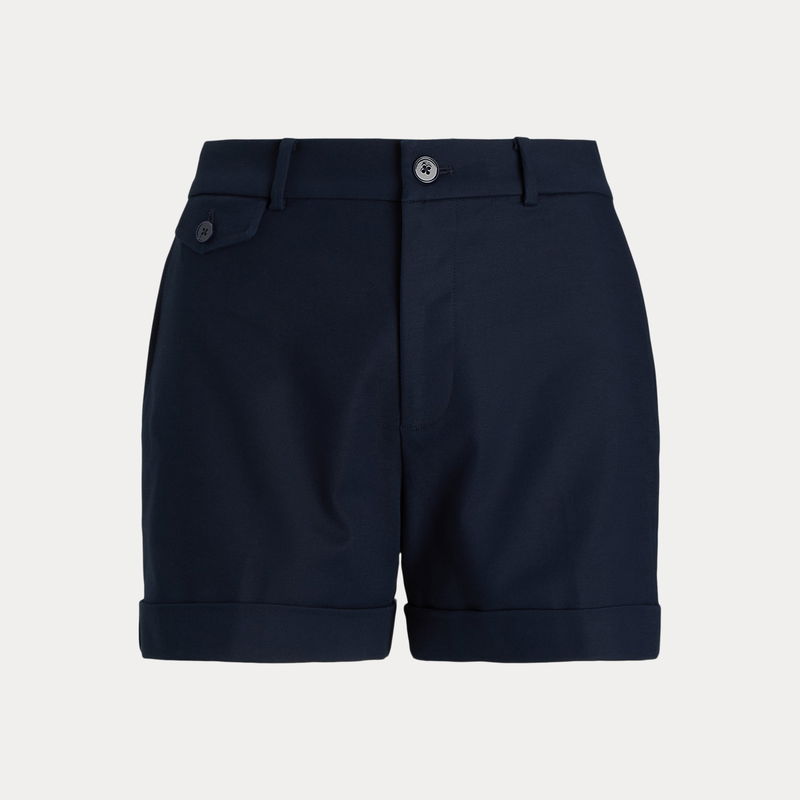 Crafted from double-faced stretch cotton, these high-rise shorts are detailed with crisp pleats, folded cuffs and waist darts for a polished look.