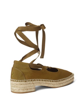 Uniting easy slip-on styling with a platform construction, the Polly sandal is Lauren Ralph Lauren Lauren's contemporary interpretation of the quintessential espadrille. Crafted with cross-dyed canvas, this version showcases a prominent "LRL" bombé logo on the vamp for signature style.