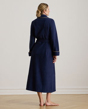 This ultrasoft robe is crafted with brushed cotton interlock and tailored with a diamond-quilted shawl collar. Contrast piping brings added sophistication, while an "LRL"-embroidered monogram on the chest pocket offers a signature Lauren Ralph Lauren Lauren finish.