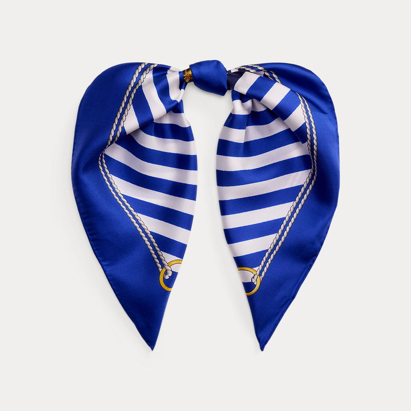 Striped Anchor-Crest Silk Square Scarf