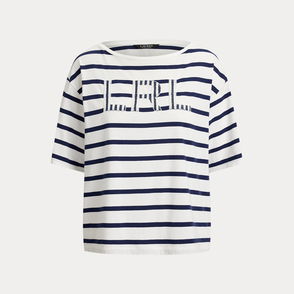 Made with breathable cotton-blend jersey for a soft hand feel, this nautical-inspired boatneck tee melds horizontal stripes with Lauren's signature logo and a bold anchor graphic.