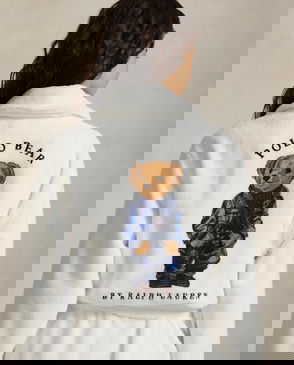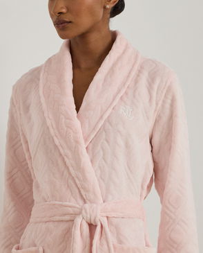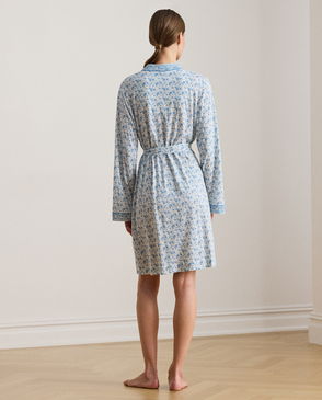 Punctuated by slender stripes, the wrap silhouette of this robe is made with breathable cotton jersey for a comfortable feel. Contrast piping and an "LRL"-embroidered logo on the chest add a sophisticated finishing touch.