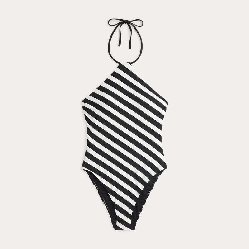 Striped High-Neck Halter One-Piece