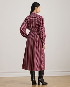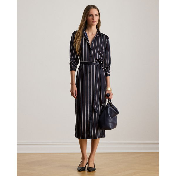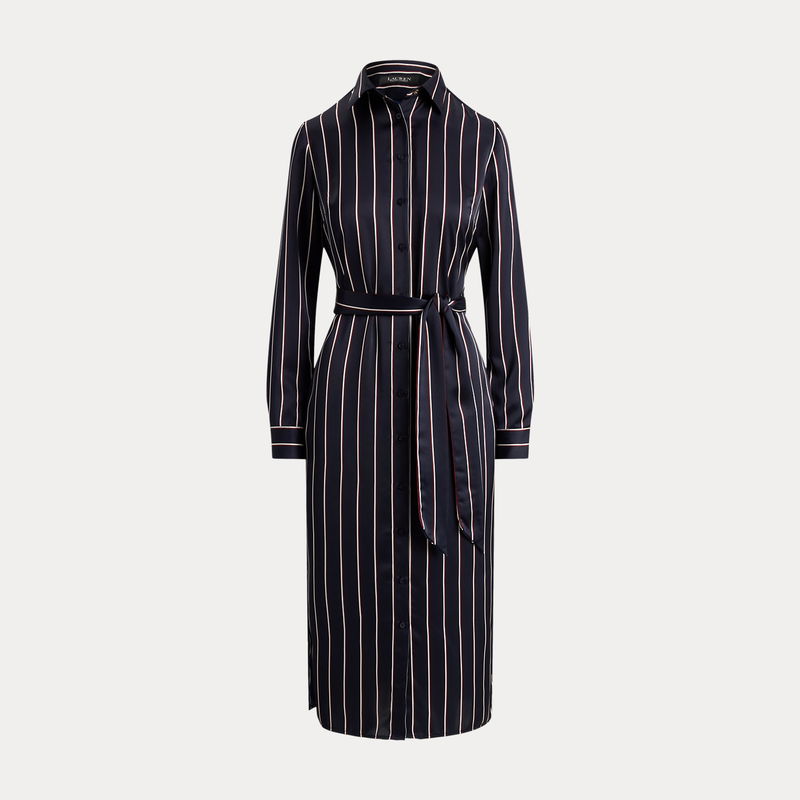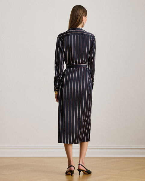 Striped Satin Charmeuse Shirtdress