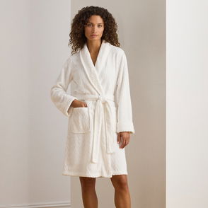 The luxuriously smooth hand of satin brings a fluid drape and beautiful sheen to this long robe, which showcases the season's dreamy sun-bleached print. Bracelet-length sleeves and an "LRL"-embroidered logo at the sleeve cuff offer a feminine finishing touch.