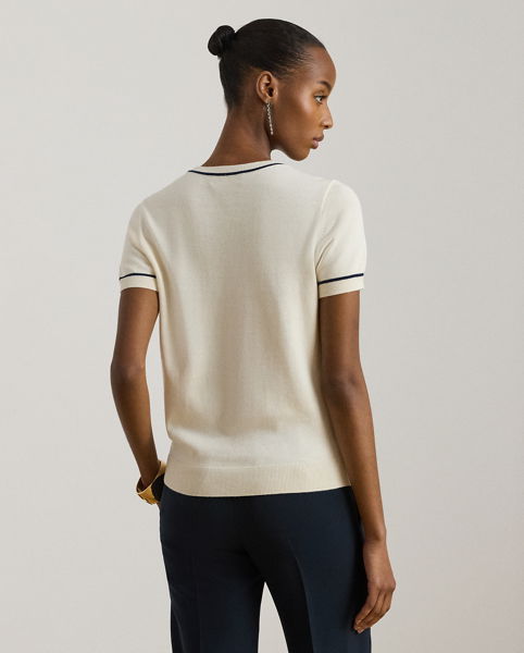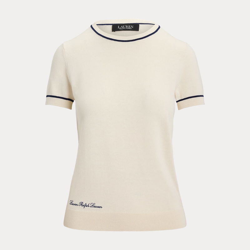 Knitted with a soft blend of cotton and modal, this short-sleeve jumper features a two-tone design embroidered with Lauren’s script logo at the hem.
