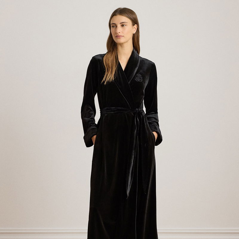 Description: Featuring a plush velvet fabric, this robe is detailed with an embroidered script monogram and crown at the chest for a signature Lauren finish. Materials: Velvet Product Code: 100074928