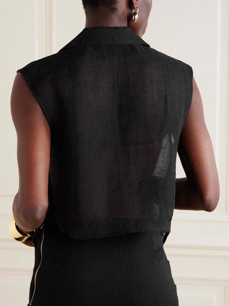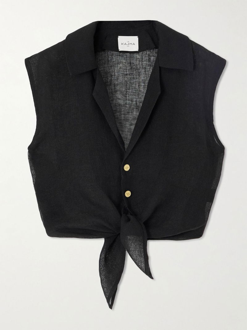 Le Kasha's 'Sanabo' shirt is made from Italian organic linen-gauze that's lightweight and slightly sheer, so be mindful of underpinnings. It has a classic point collar and tie-front that's cropped to sit just above your hips. Wear it with everything from flowy skirts to jeans.