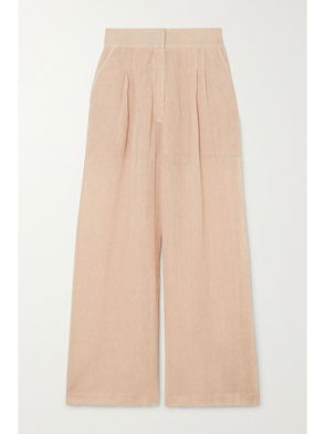 Le Kasha's peach-hued 'Sidfa' pants have been made at the label's atelier in Paris from Italian mid-weight organic linen that's beautifully refined. They have a cutout waist framed with a braided belt and flowing wide legs. They'll look especially chic styled with the matching bralette and slides.