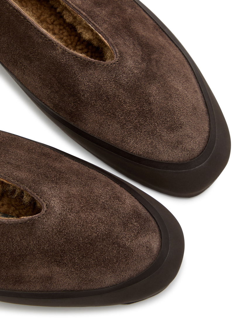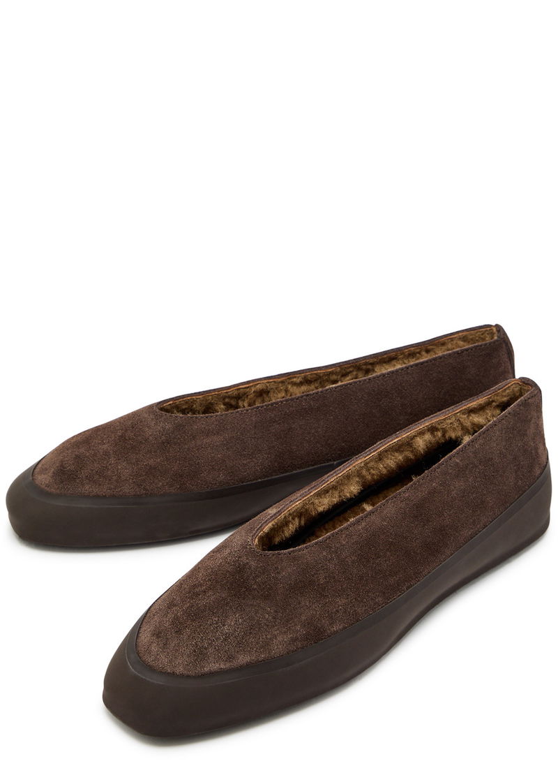 Le Monde Beryl suede ballet flats Shearling lining, textured rubber sole, almond toe. Slip-on. -SKU No.: 51567_BRWN
