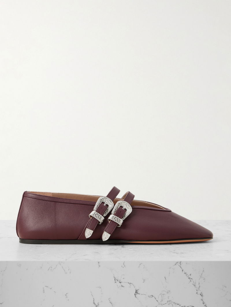 Le Monde Beryl's 'Claudia' ballet flats are defined by Western-inspired hardware at the double Mary Jane straps. Handcrafted from leather, they have V-shaped vamps and rounded toes.