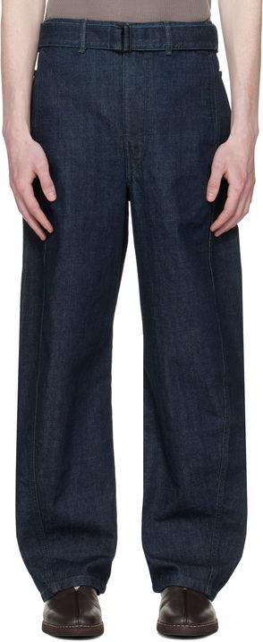Tapered garment-dyed and coated non-stretch denim jeans.