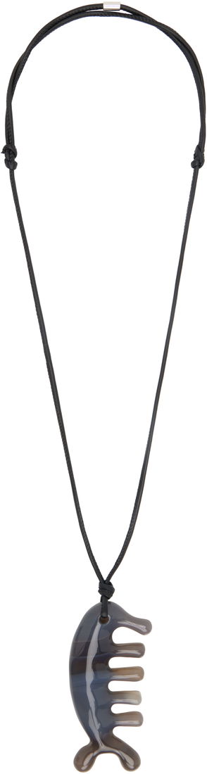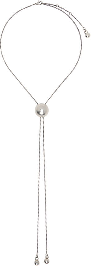 Curb chain necklace in antiqued silver-tone brass.