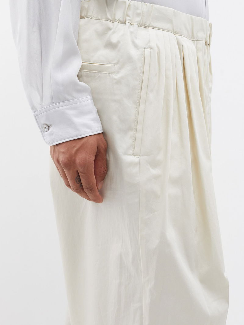 Lemaire's artful minimalism is reflected in the precise pleats of these cream trousers, expertly crafted from crisp cotton with a comfortable elasticated waist.