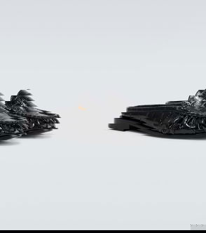 Grained calfskin loafers in gray.· Square toe· Piping at vamp and collar· Topstitching at welt· Crepe rubber heel and sole. Available exclusively at SSENSE.