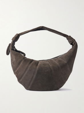 A new interpretation of Lemaire's iconic Croissant design, the Fortune shoulder bag features a soft half-moon silhouette. The style is constructed with panels of grained leather, featuring knotted details and a zippered top.