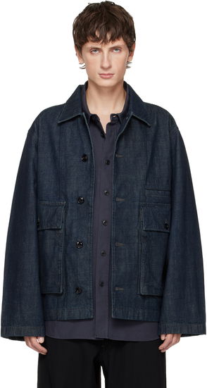 Loose-fit lightweight cotton twill jacket. · Button fastening at open spread collar· Concealed button closure· Flap and bellows pockets at front· Adjustable button fastening at cuffs · Partial cotton twill lining.