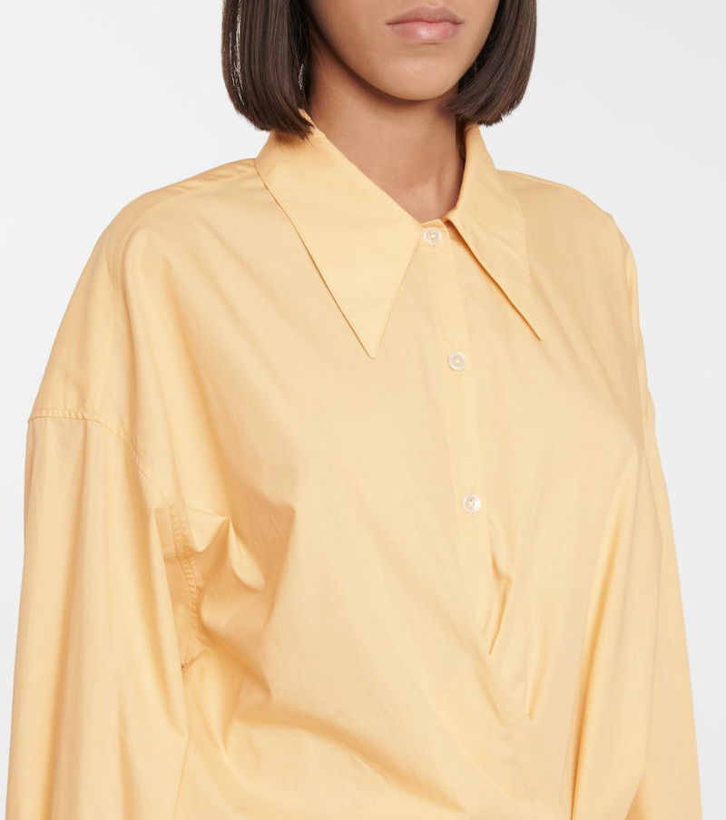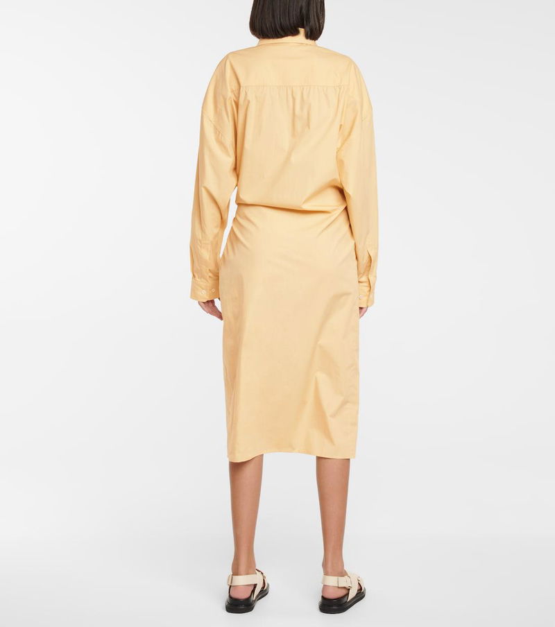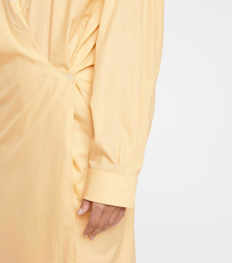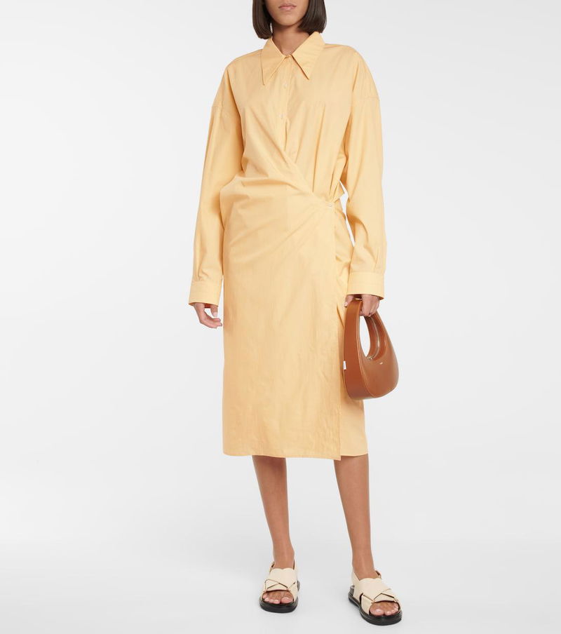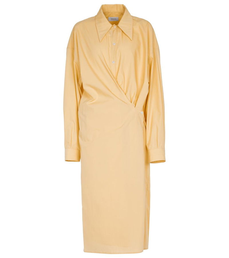 Lemaire offers an unusual riff on your classic shirt dress with this custard-yellow design. It's cut from cotton with a buttoned wrap detail that gently cinches the waist.