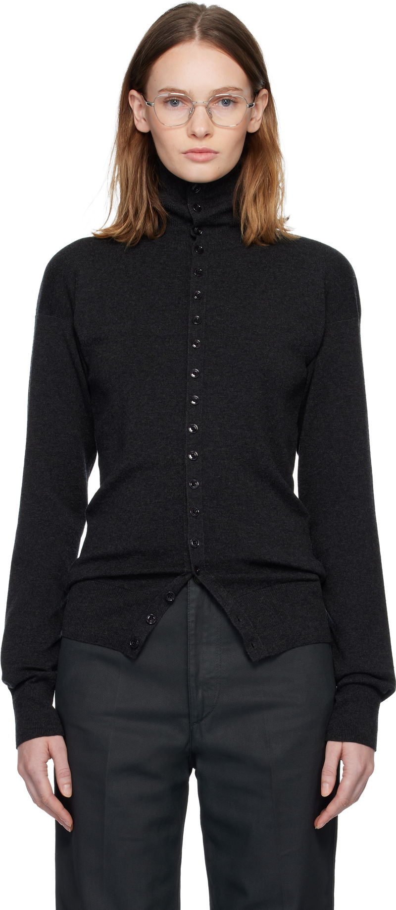 Gray Buttoned Fitted Cardigan