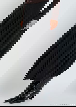 Christophe Lemaire masterfully juxtaposes a utilitarian mood with a feminine silhouette to create this slate-grey midi skirt. It's crafted from durable linen-blend canvas with a high-rise waist and topstitched front pleat, then fitted with side pockets to keep small essentials close at hand. Style it with a blazer and point-toe boots for a bohemian look.