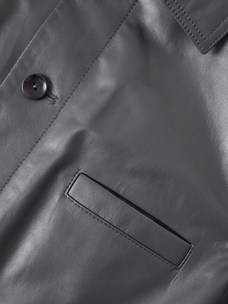 The boxy, subtly cropped cut of Lemaire's jacket echoes timeless Parisian style. It's crafted from leather specially selected for its supple quality, lightly gathered along the elasticated waistband and finished with a classic collar. A full lining ensures it sits neatly and comfortably over shirts or fine knitwear.