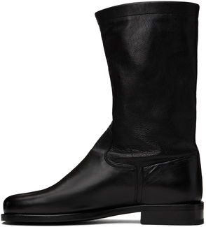 Lemaire’s understated aesthetic paired with impeccable craftsmanship defines the low-cut silhouette of these dark brown boots. They’re crafted from smooth leather with a loafer-constructed vamp and round toe, then set atop a stacked block heel.