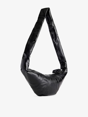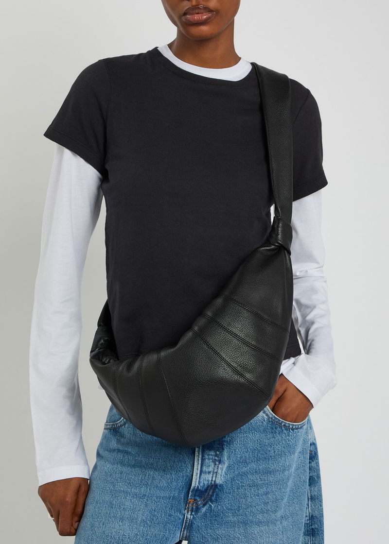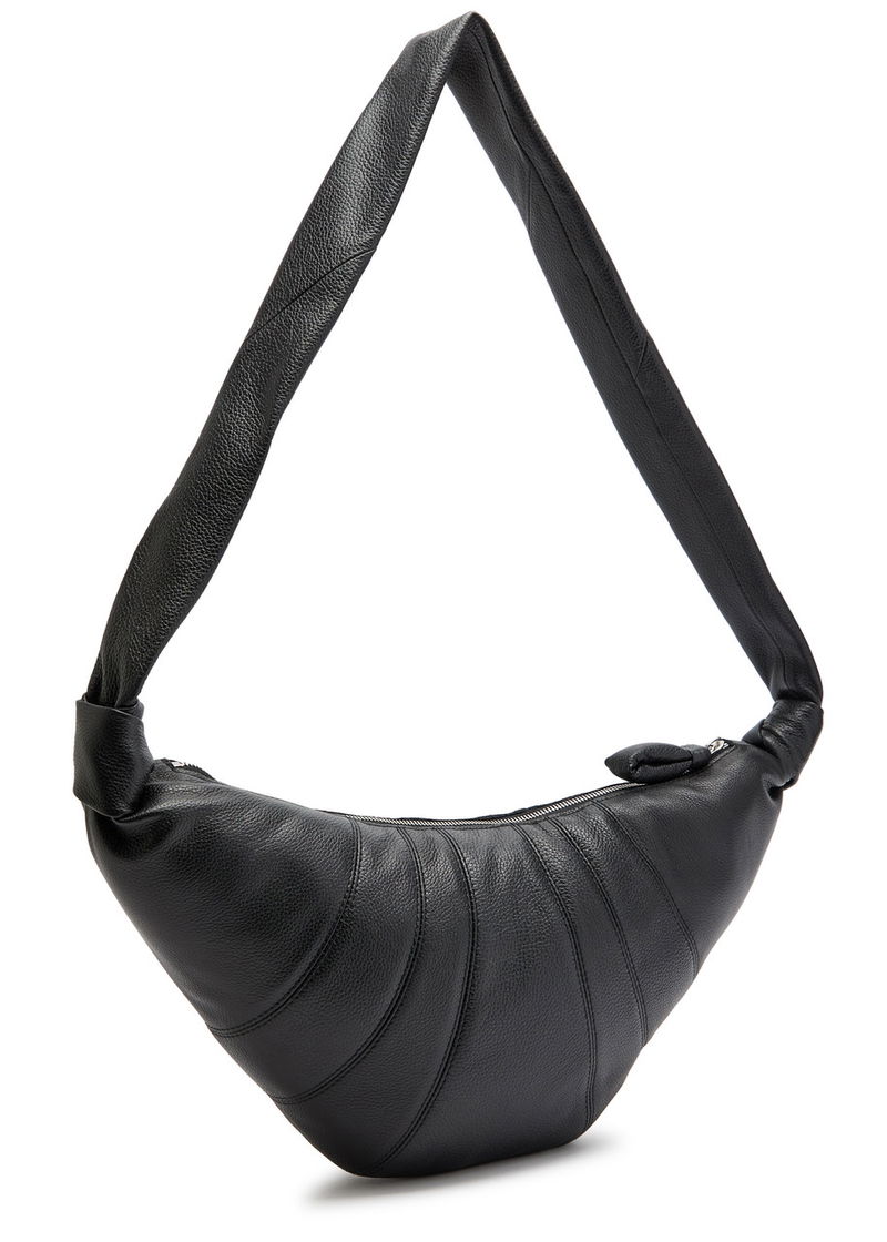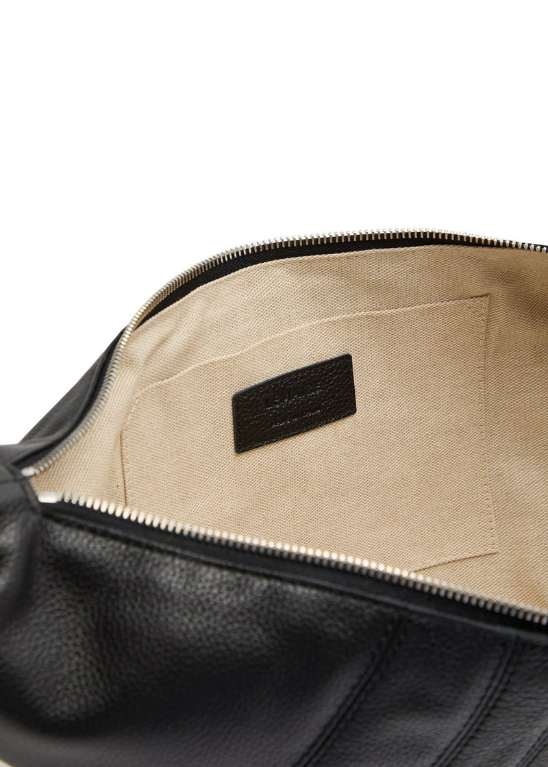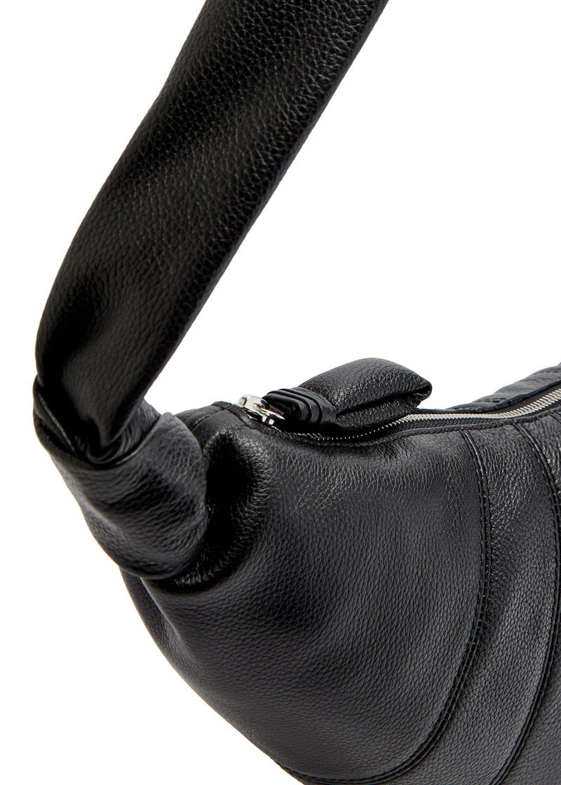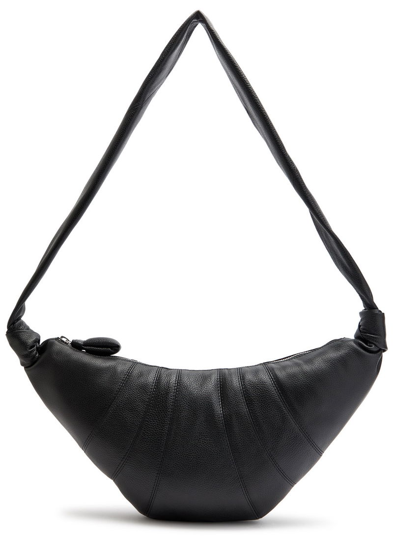 Lemaire grained leather shoulder bag. Shoulder strap with knotted detail, quilted zip-pull, stitched panels, internal slip pocket, fully lined. Zip fastening across top.