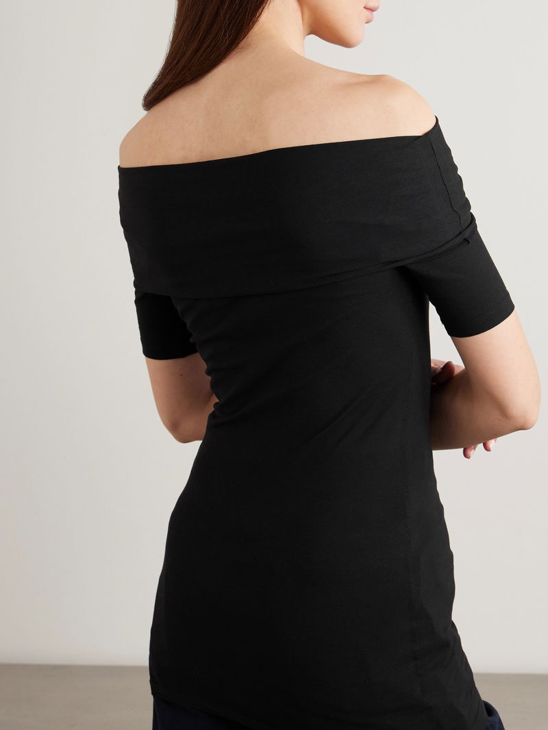 LEMAIRE's top proves that great materials and a simple silhouette is sometimes all you need. It's cut from stretch organic cotton-jersey in a slender fit with a folded off-the-shoulder neckline. Keep styling pared-back with jeans or tailoring.
